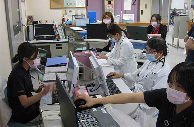 リハビリ担当者が主体となり、病棟と協力して適切な動作方法・介助方法の統一や指導を行っています。